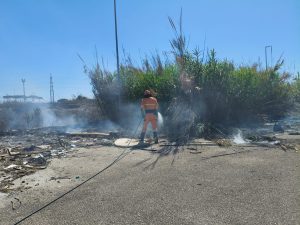 Incendio di sterpaglie e rifiuti ad Anzio, interviene l'Anc