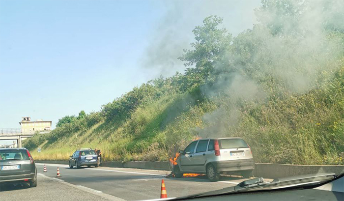 Incidente sulla Pontina con auto in fiamme, tra via dei Rutuli e la Laurentina. Traffico tornato regolare.