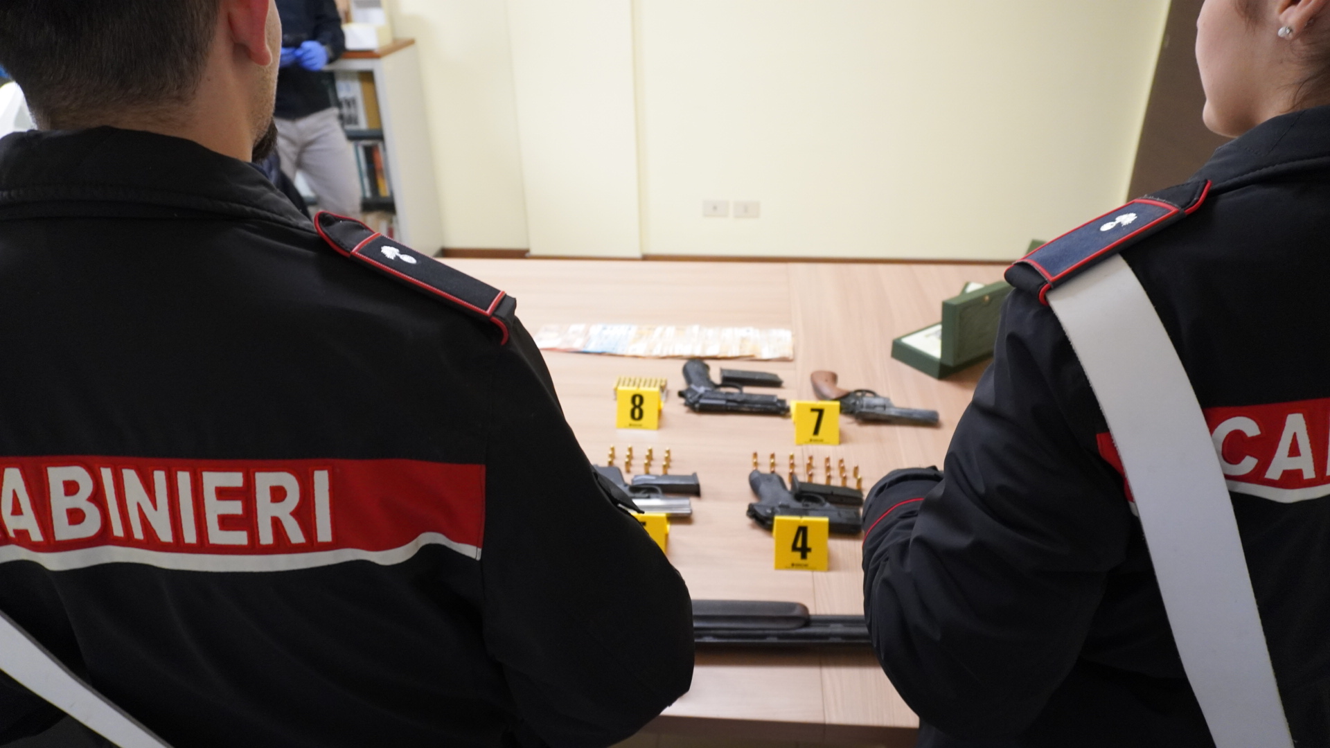 Le persone che avevano la disponibilità del locale dove sono state trovate le armi e le bombe, padre, madre e figlio, non interessati dall’ordinanza del Tribunale e non indagati nel relativo procedimento, sono stati arrestati in flagranza, in attesa della convalida. Nel corso delle perquisizioni, nelle fasi di notifica dell’ordinanza i Carabinieri hanno inoltre trovato e sequestrato a carico di quattro degli indagati 49mila euro in contanti.