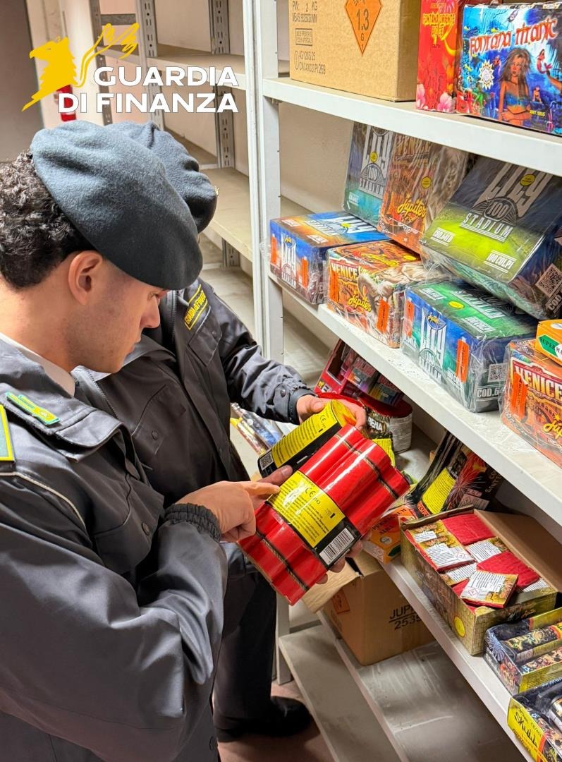 Il primo intervento è stato eseguito nella Capitale, a seguito di una segnalazione. I militari della Compagnia di Colleferro hanno individuato oltre due tonnellate di materiale pirotecnico custodito all’interno di locali riconducibili a una società operante nella periferia orientale di Roma, risultata priva delle prescritte autorizzazioni di pubblica sicurezza per la detenzione e la commercializzazione dei prodotti.