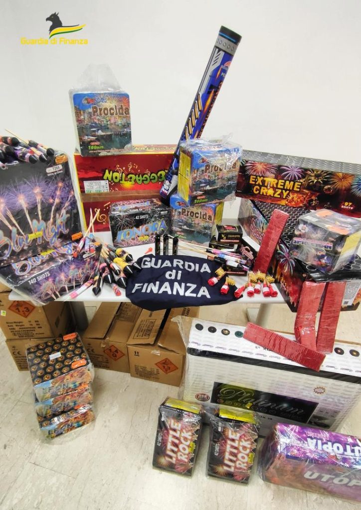 In particolare, le Fiamme Gialle pontine hanno rinvenuto circa 20 kg di articoli pirotecnici (oltre 1000 pezzi) particolarmente pericolosi, custoditi in assenza delle più elementari regole di sicurezza e pronti per essere immessi in commercio sul retro di una abitazione privata di Terracina. Inoltre sono stati rinvenuti circa 100 grammi di marijuana.