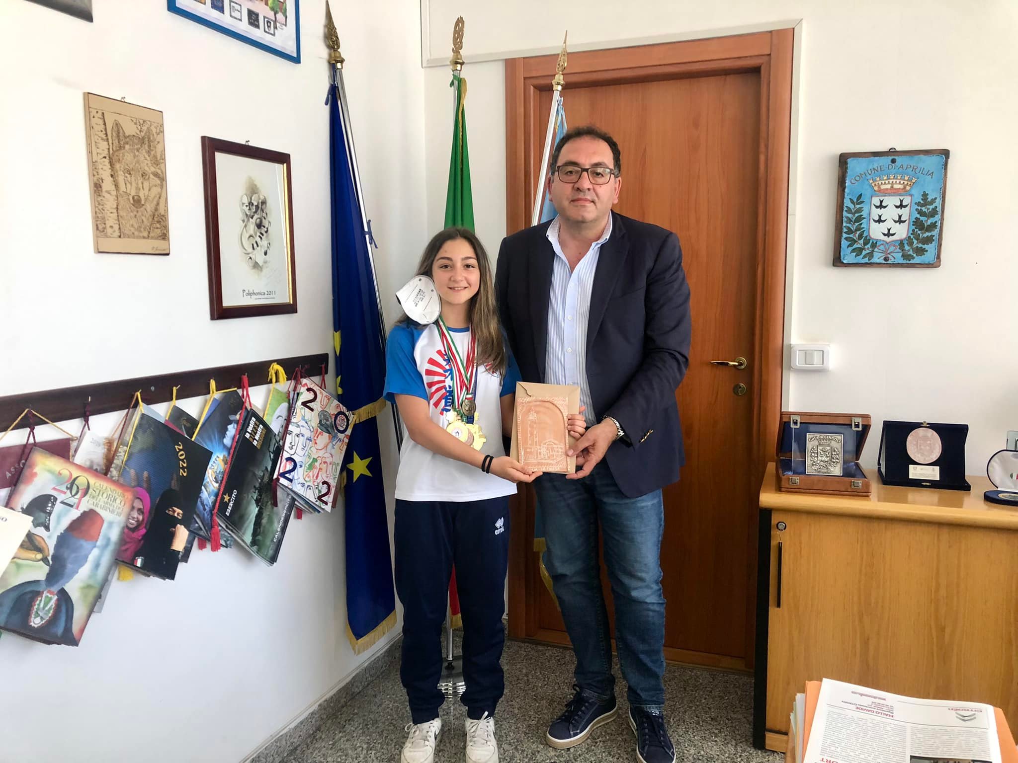 La giovanissima judoka di Aprilia Nicole Coccia, medaglia di bronzo ai campionati italiani, ricevuta in Comune.