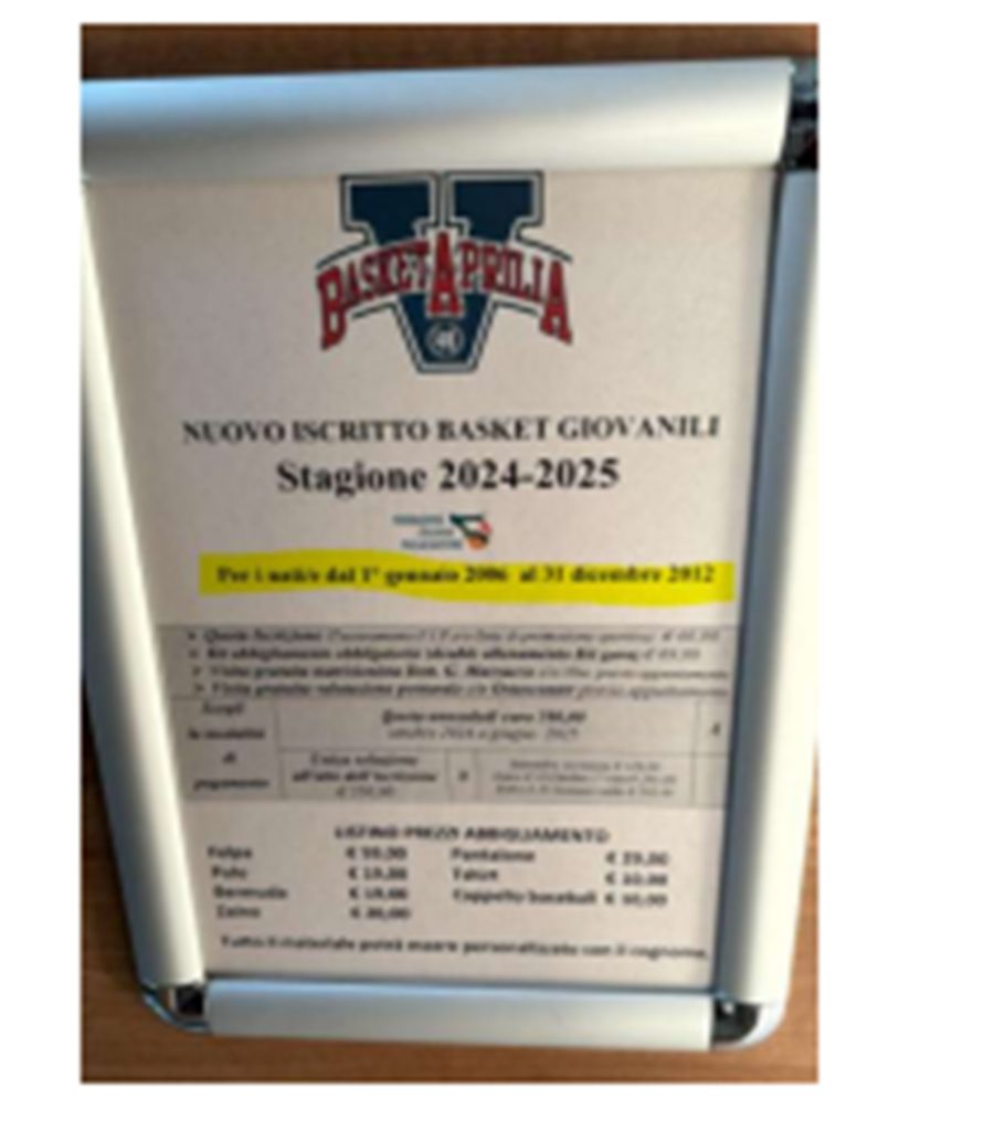 "Leggendo attentamente le motivazioni comunicate tramite social e magazine da parte della società Pieralisi Virtus Basket Aprilia, è doveroso aggiungere un elemento fondamentale. Il cartello in foto, affisso al pubblico dalla società a settembre 2024, mostra le condizioni di adesione per l’anno 2024/2025