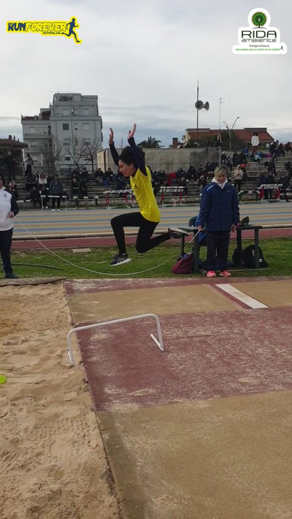 Nonostante le nostre atlete non abbiano potuto preparare la gara di salto in lungo per mancanza di una struttura adeguata su cui allenarsi, si sono messe in coda sulla pedana per eseguire almeno due salti di prova. Dopo i quattro salti a disposizione Francesca ottiene la sua migliore prestazione con un salto di 4,14 mt. stabilendo il suo primato personale, Emma invece, 3,54 mt., e Virginia 3,32 mt. ben lontana dal suo personale.