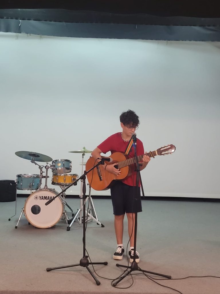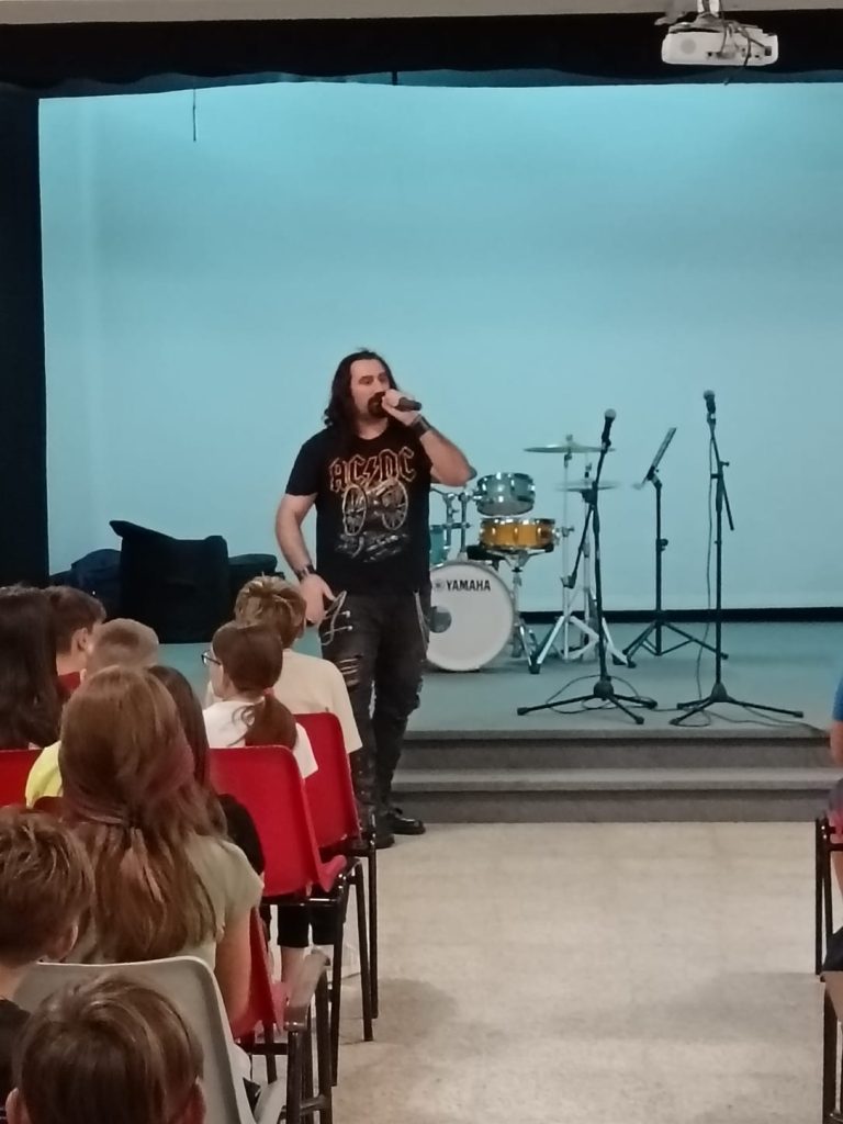 Al termine si sono esibiti, con grande apprezzamento da parte di tutti, i Maestri Sara Tiranti docente di canto Pop, Maurizio Colazza docente di Batteria e Marco Palazzi , eclettico docente di Canto rock e Laboratorio rock, che con brani di Bon Jovi e i Queen ha ammaliato i ragazzi e l’intera platea.
