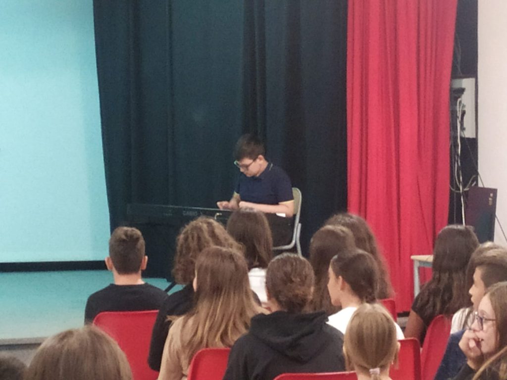 Il concerto ha visto sulla scena i ragazzi di seconda e terza media che frequentano i corsi extracurriculari di musica all’interno dell’Istituto organizzati dalll’Associazione Nuovi Armonici .