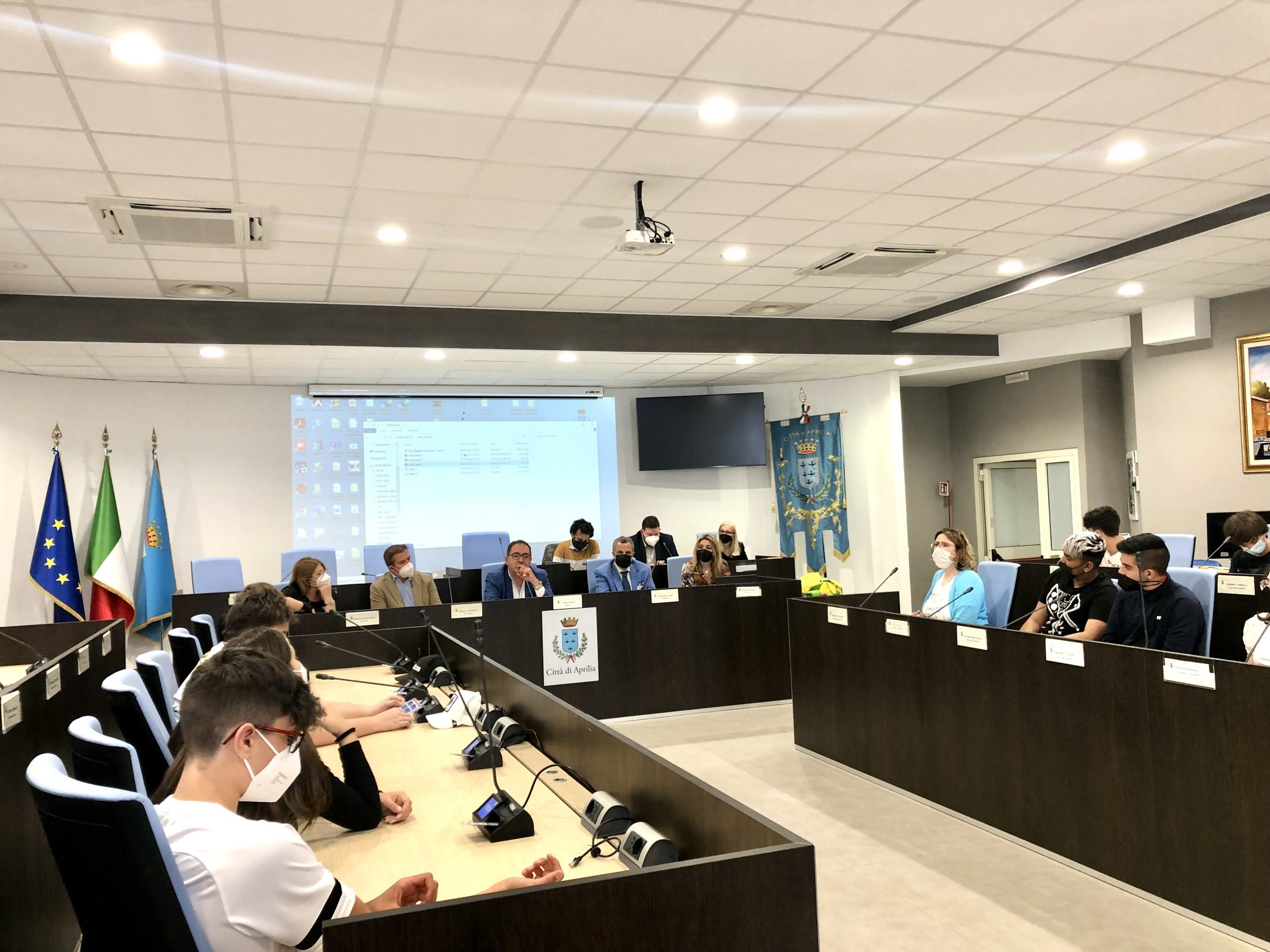 Ieri mattina la classe terza media sezione L dell’Istituto Pascoli è stata ricevuta presso la sala consiliare “Luigi Meddi” di piazza Roma dal sindaco di Aprilia Antonio Terra, dall’assessore alla Pubblica istruzione Gianluca Fanucci e dall’assessora all’Ambiente Michela Biolcati.