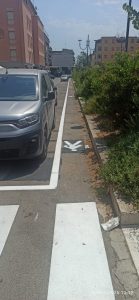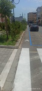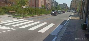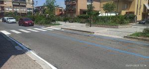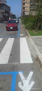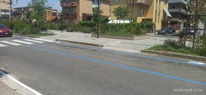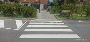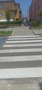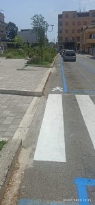 È stato realizzato anche il secondo attraversamento pedonale in corrispondenza delle rampe per disabili, che finalmente saranno fruibili grazie anche al fatto che sono state cancellate le strisce degli stalli auto precedentemente realizzate proprio in corrispondenza delle stesse rampe rendendole, di fatto, inutilizzabili.