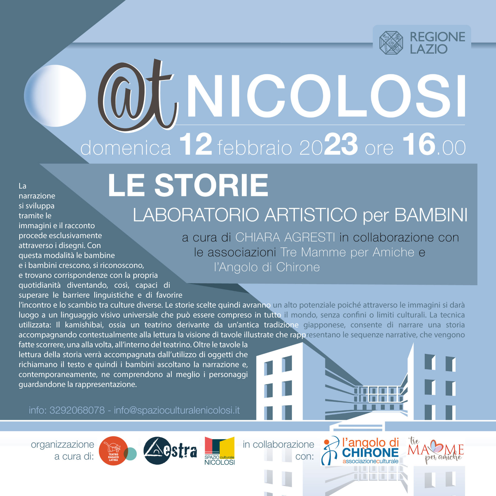 Spazio Culturale Nicolosi, in collaborazione con Associazione Culturale Lestra, Teatro Ragazzi di Latina e con il sostegno della Regione Lazio propone una serie di attività di spettacolo dal vivo, art...