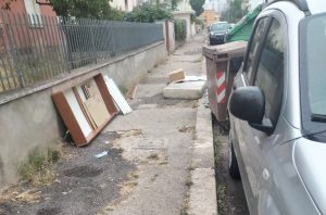 Latina – L’indifferenziato del giorno è un materasso. Un grande classico in realtà, il re dei rifiuti ingombranti lasciati in strada. Vicino al materasso pezzi di un mobile non meglio identificato. Il tutto correttamente dietro ai cassonetti.