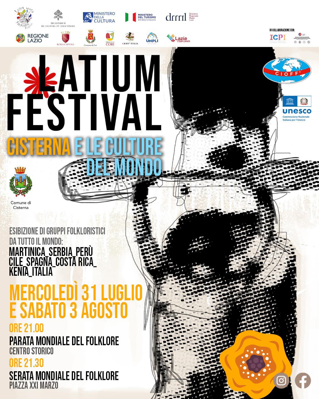 “Latium Festival”, questo sabato 3 agosto a Cisterna la parata dei gruppi folkloristici e a seguire le esibizioni in Piazza. La sfilata avrà inizio alle 21 lungo Corso della Repubblica. Alle 22.00, poi, sul palco centrale allestito Piazza XIX Marzo, ci saranno le esibizioni dei gruppi folkloristici.