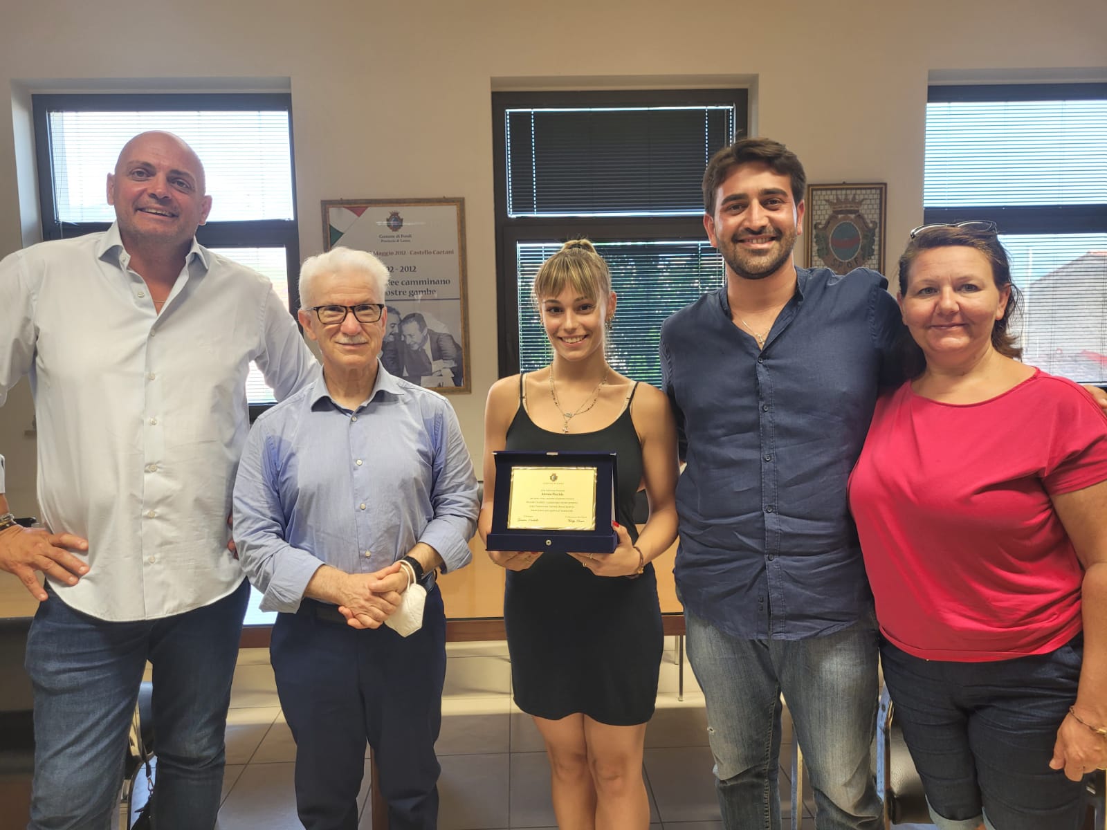 L’atleta di Fondi Alessia Pecchia, campionessa italiana di danza sportiva, premiata dal Sindaco Beniamino Maschietto. -