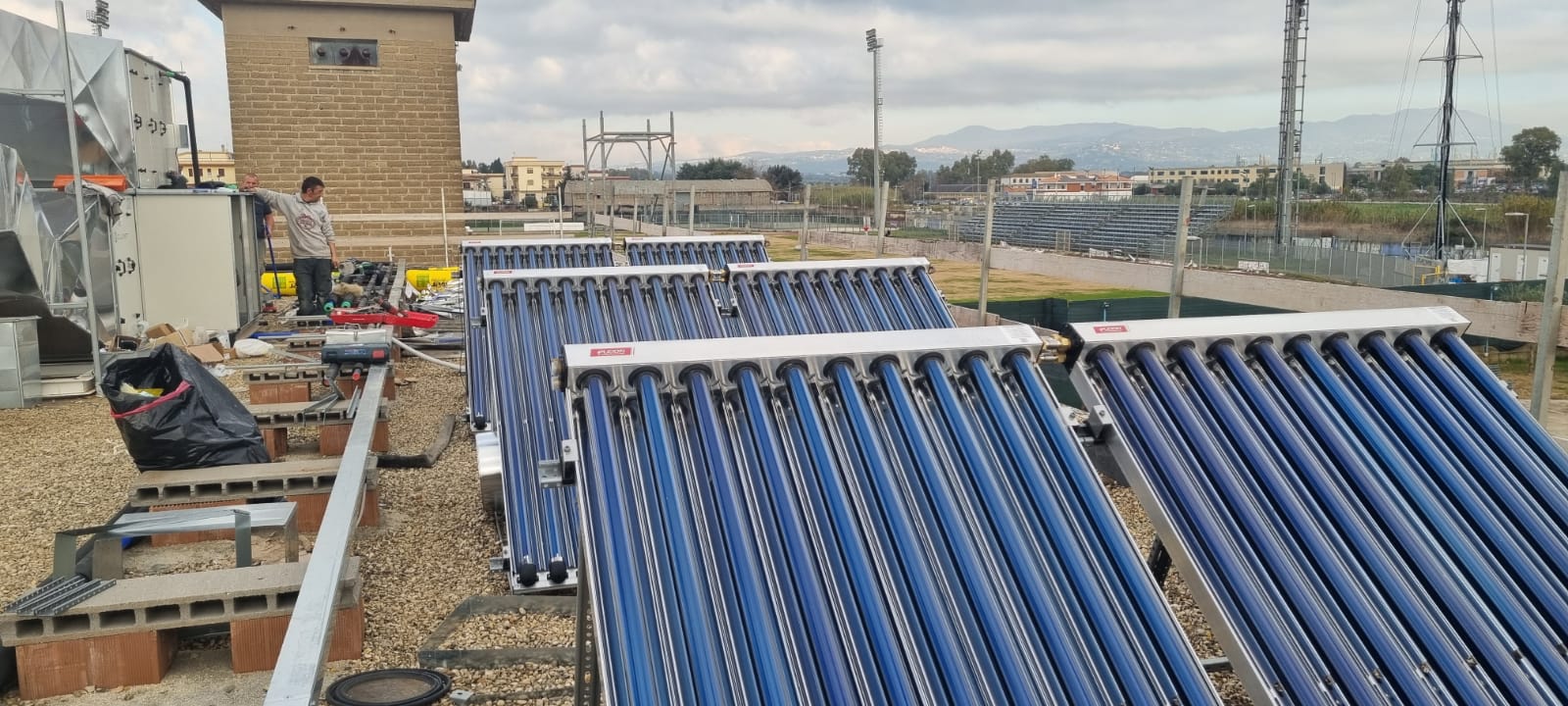 Lavori di riqualificazione alla piscina comunale di via Ugo La Malfa, ad Aprilia: installati i pannelli fotovoltaici. Sopralluogo del Comune.