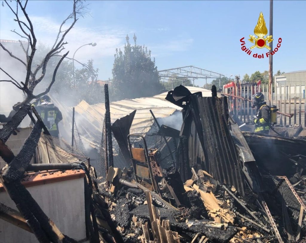 Le fiamme distruggono un deposito di attrezzi in via del Piccarello a Latina.