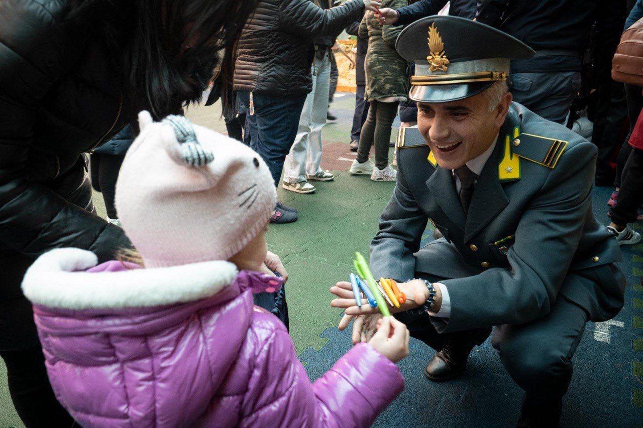 La significativa circostanza è stata arricchita anche dalla presenza di un’unità cinofila dei Carabinieri, un pastore tedesco di nome “Dingo”, e di una unità cinofila della Guardia di Finanza, un pastore tedesco di nome “Haltair”, che hanno intrattenuto ed entusiasmato i fanciulli.