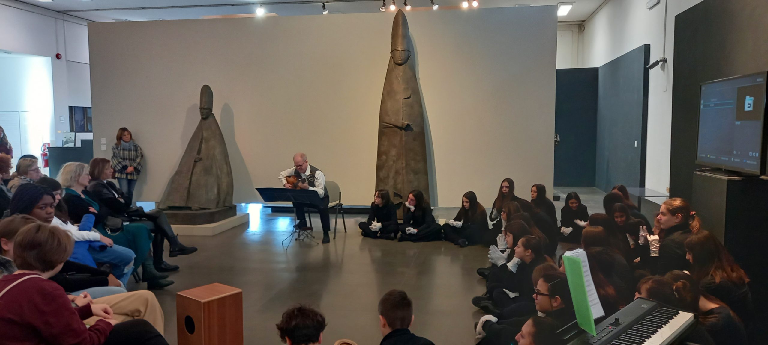 Ed è così che ascolti la sua voce, in un'intervista Rai proiettata: pochi minuti ma in grado di far conoscere ai ragazzi l'artista e l'uomo Manzù.