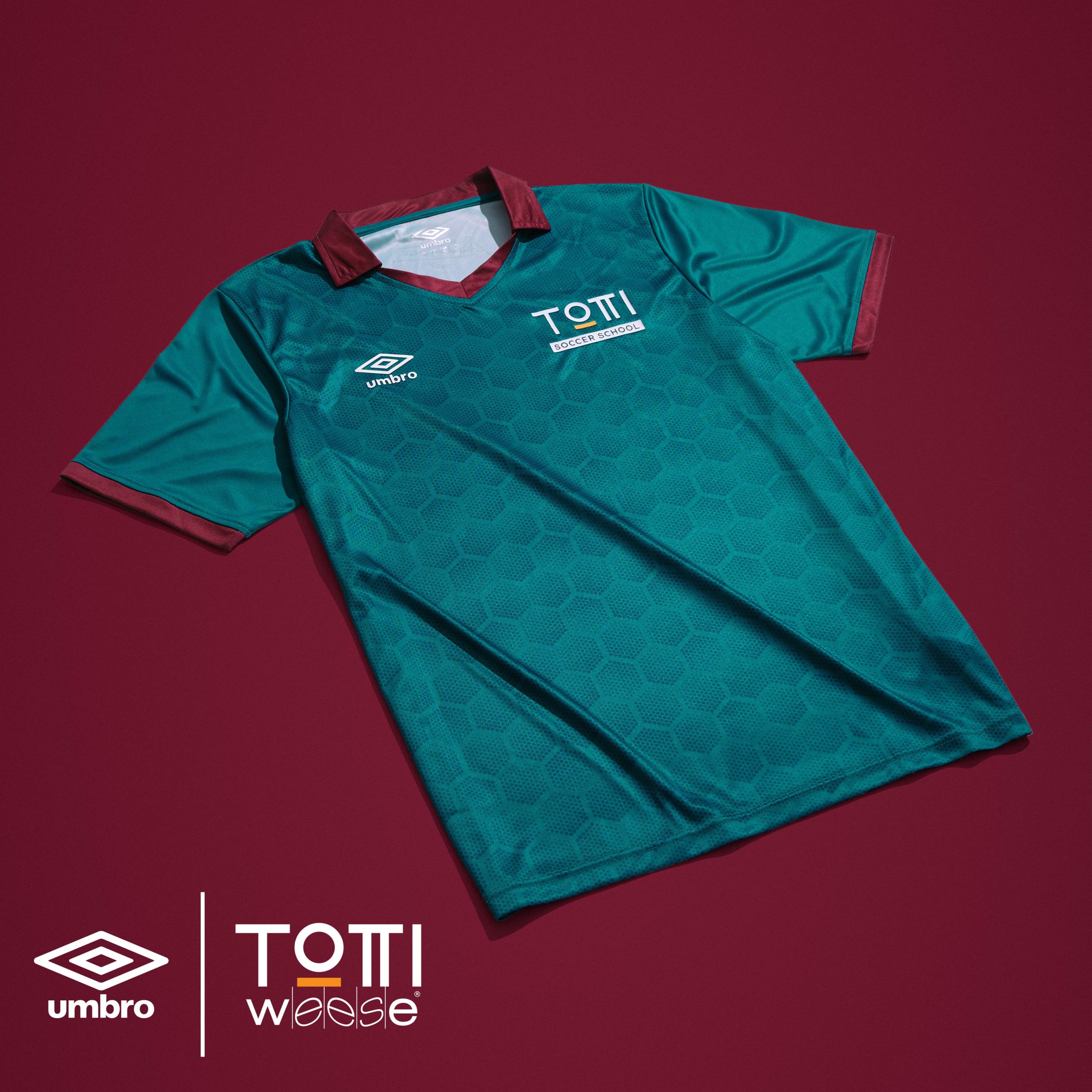 Grande soddisfazione per la collaborazione con la Totti Weese viene espressa naturalmente anche da Umbro. “Vestiamo da due anni le giovani promesse della Totti Soccer School, ci sentivamo già parte della famiglia”, aggiunge Pino Magno, Ceo di NewAge, la società che ha riportato il marchio Umbro in Italia. “Vestire Totti in persona, però, è certamente una grande emozione e un grande onore. Lui è una leggenda. Abbiamo fatto del nostro meglio per offrire al capitano e a tutta la squadra una divisa bella e tecnicamente performante”.