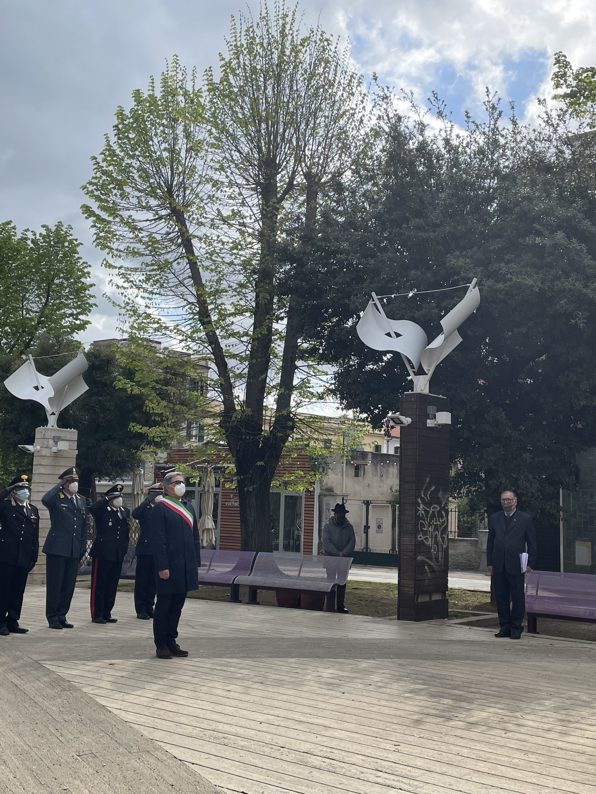 Il sindaco Valentino Mantini ha deposto la corona di fiori; il presidente della sezione locale dell’Anpi, Gianmarco Tora, ha reso omaggio con un mazzo di fiori.