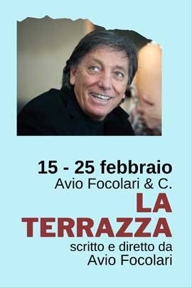 In scena già dallo scorso 15 febbraio e con grande apprezzamento da parte del pubblico, lo spettacolo “La Terrazza” vede protagonisti sul palco, assieme ad Avio Focolari, gli attori Francesca Di Iorio, Giulio Anese, Angelo Del Romano, Stefania Polentini, Cristina Carli, Armando Giacomozzi e Lorena Leoni.