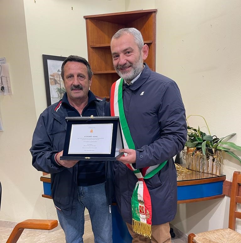 Il sindaco di Cori, Mauro Primio De Lillis, e la delegata alle Attività Produttive, Annamaria Tebaldi, hanno voluto fargli visita nel suo salone per ringraziarlo di oltre mezzo secolo di lavoro, salutarlo ufficialmente a nome della comunità e consegnargli una targa in cui se ne ricorda “l’attività svolta con grande professionalità, amore e cura dei propri clienti. Con stima e gratitudine”.