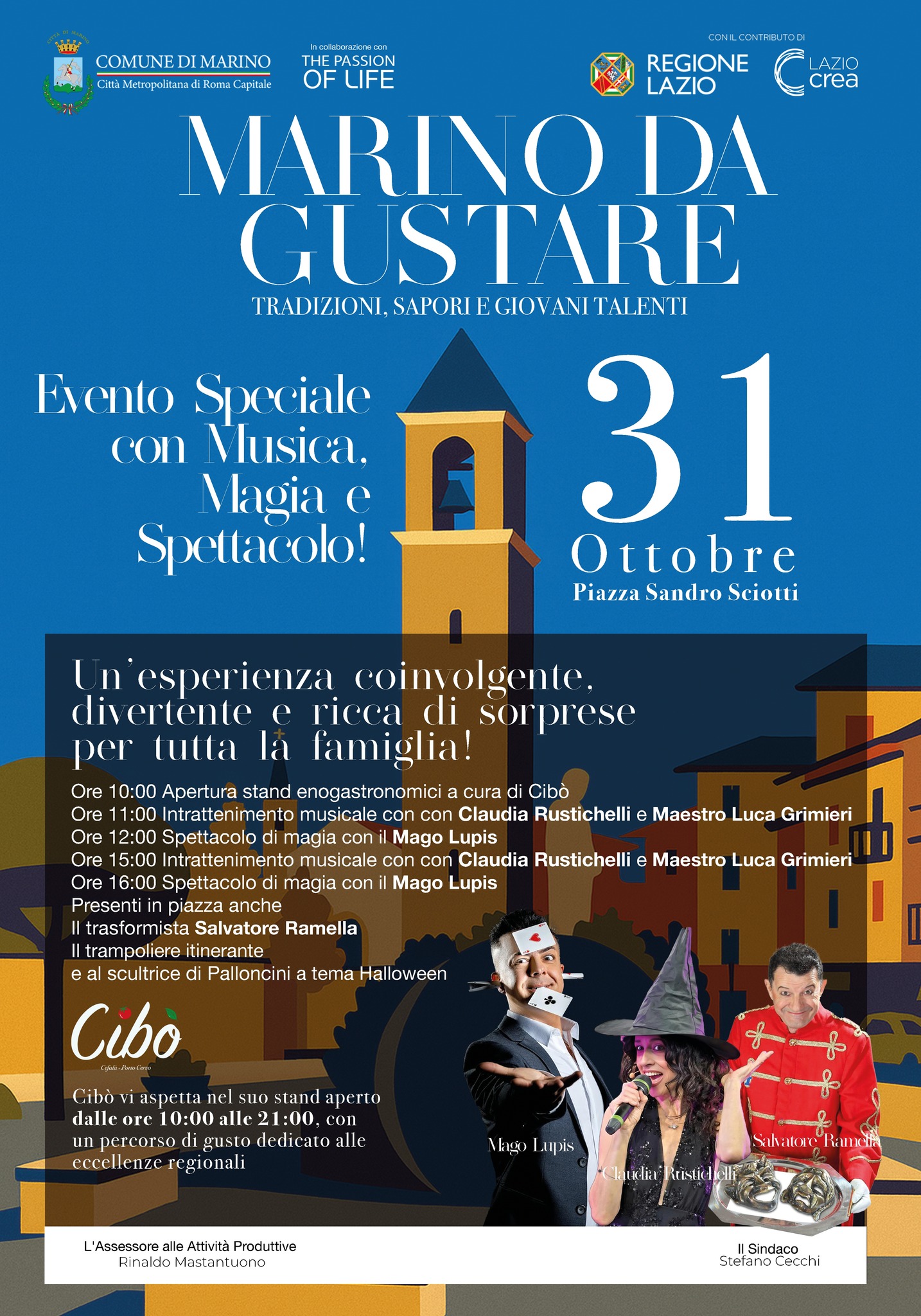 “Marino continua a valorizzare le sue tradizioni puntando su eventi che uniscono qualità, intrattenimento e promozione del territorio. - ha commentato l’assessore alle Attività Produttive, Rinaldo Mastantuono - Grazie al contributo di Lazio Crea, ‘Marino da Gustare’ è un’occasione per celebrare le nostre eccellenze, coinvolgere le famiglie e dare spazio ai giovani talenti, in un’atmosfera di festa e condivisione”.
