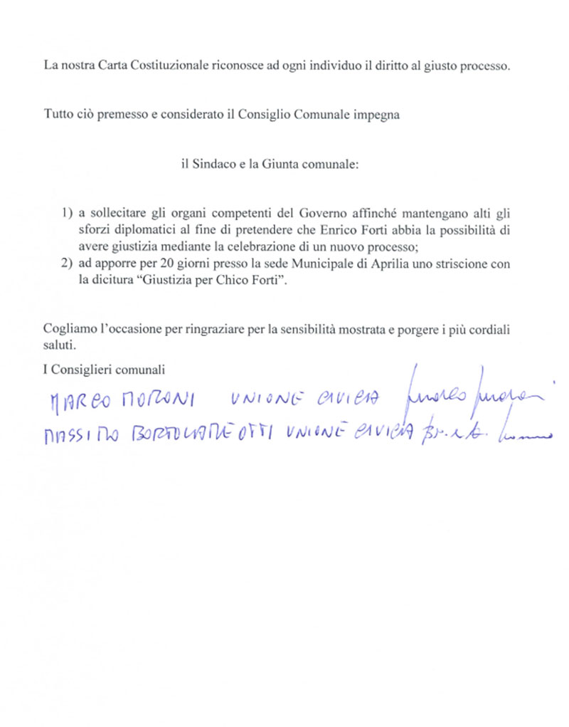 Questo media è parte della galleria Galleria 1 del post: Rientro in Italia di Chico Forti: soddisfazione dell’assessore di Aprilia, Moroni, che nel 2020 presentò una mozione per chiedere giustizia. di Letizia Floreno.