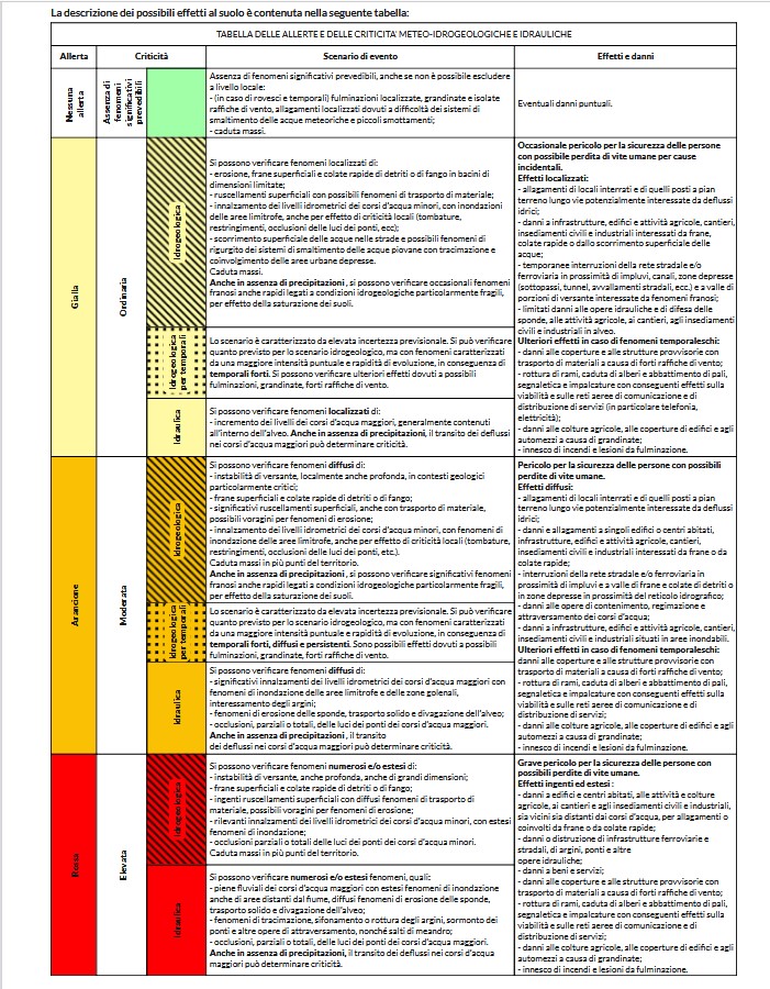 Ordinaria criticità idrogeologica per temporali - Lo scenario è caratterizzato da elevata incertezza previsionale. Si può verificare quanto previsto per lo scenario idrogeologico, ma con fenomeni caratterizzati da una maggiore intensità puntuale e rapidità di evoluzione, in conseguenza di temporali forti. Si possono verificare ulteriori effetti dovuti a possibili fulminazioni, grandinate, forti raffiche di vento.