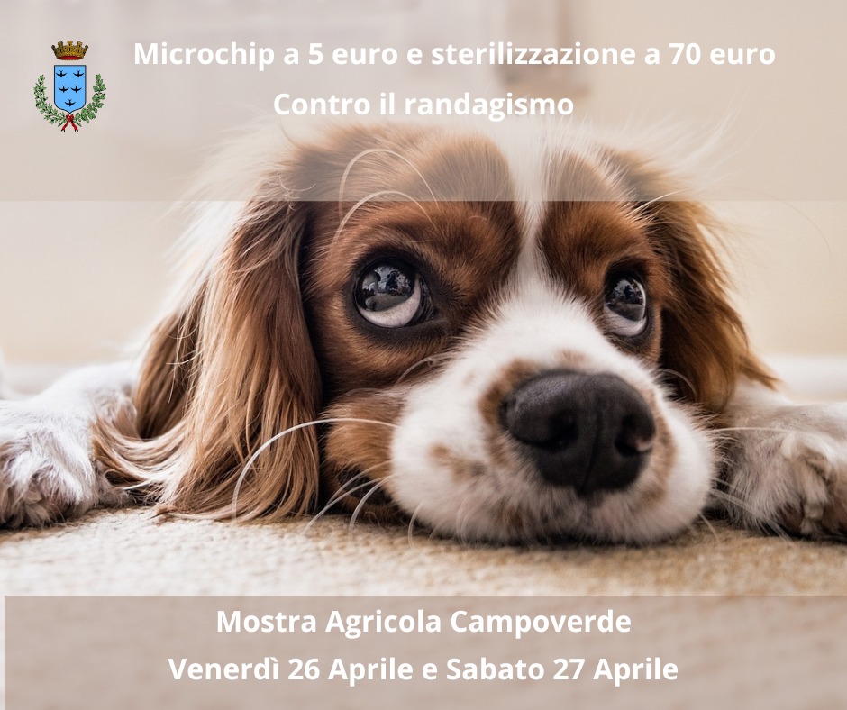 Microchip a 5 euro, ancora per oggi, alla Mostra Agricola Campoverde, e sterilizzazione del cane a 70 euro grazie ad un’iniziativa del Comune, che ha lo scopo di prevenire il randagismo. La campagna d...