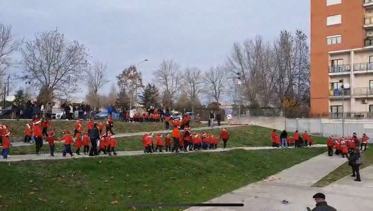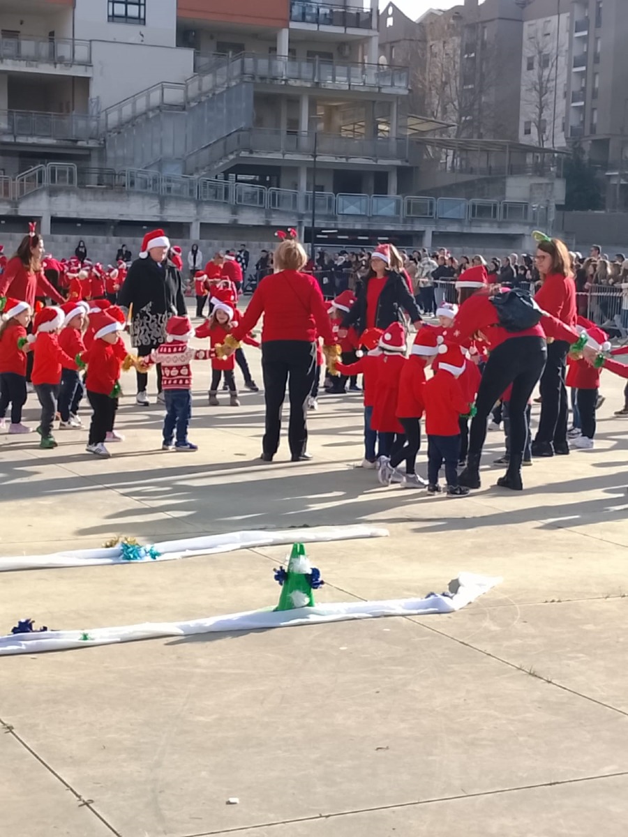 Nella mattinata di ieri, lunedì 22 Dicembre, i bambini, le docenti ed il personale della scuola dell’infanzia di Via Amburgo, dell’Istituto Comprensivo “Toscanini” hanno vissuto un momento di festa presso la piazza della Comunità Europea. I bambini hanno sfilato dietro la slitta di Babbo Natale e sono arrivati nella piazza dove hanno allietato i presenti con allegre canzoni e hanno compiuto percorsi motori a tema natalizio.