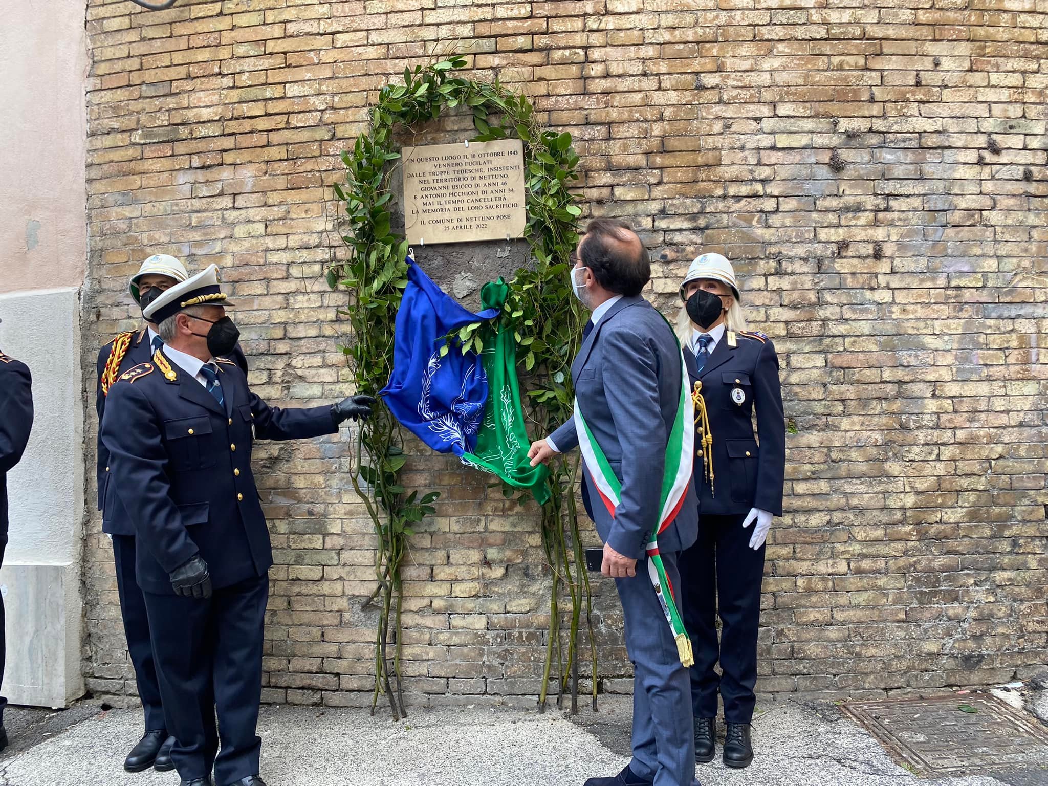 Prima della cerimonia, è stata inaugurata la targa in memoria di Antonio Picchioni e Giovanni Usicco, duce civili fucilati dai militari nazisti il 10 ottobre 1943.