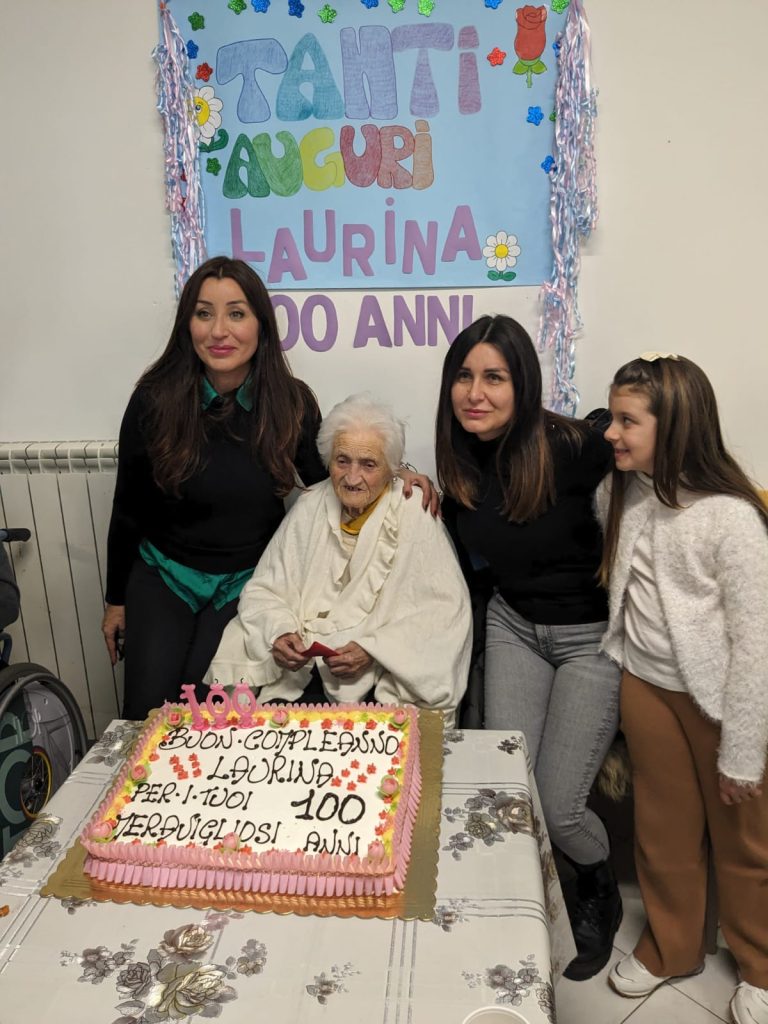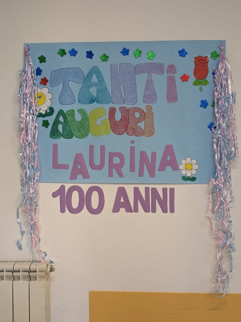 Grande festa presso la rsa "Angeli Custodi" di Nettuno per i 100 anni della signora Laurina Massimi. I parenti e il personale della rsa hanno organizzato una festa coloratissima per celebrare nonna Laurina, nata a Nettuno e residente ad Anzio. Per lei una torta, i festoni e tantissimo affetto. Auguri!