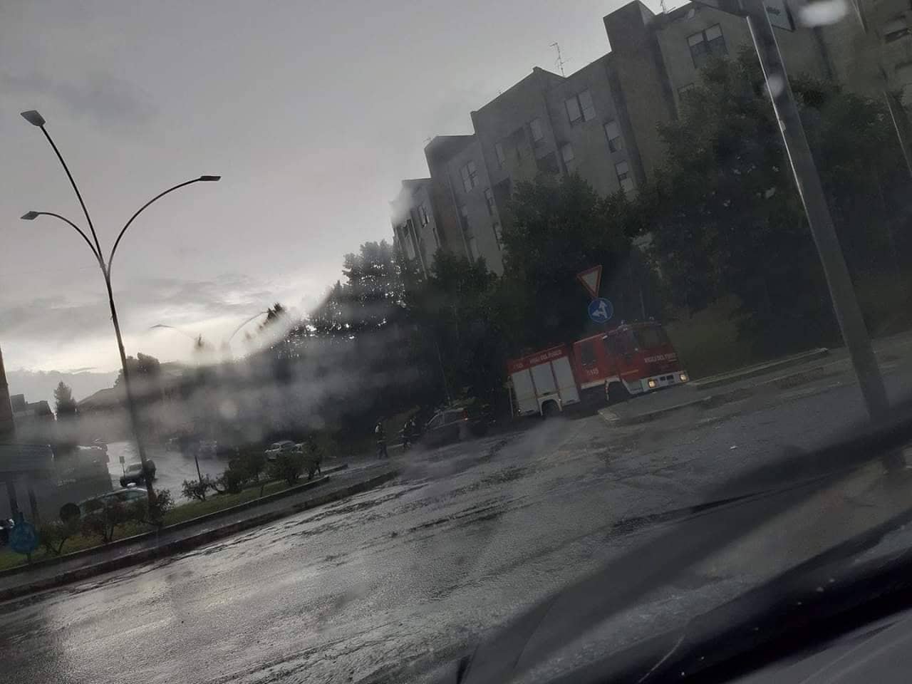 Mentre la via vicino al centro commerciale si è completamente allagata.
