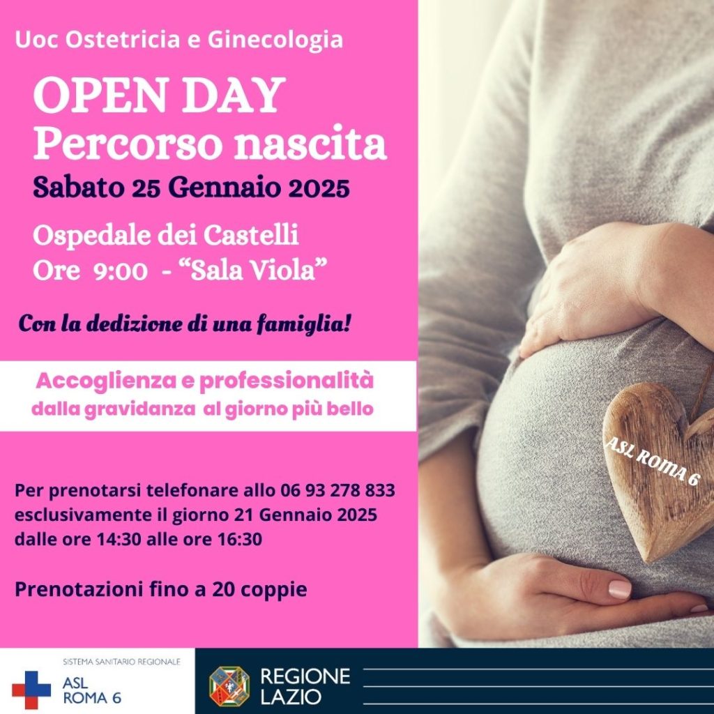Open Day “Percorso Nascita” all’Ospedale dei Castelli, un evento dedicato alle future mamme e papà. Ad organizzarlo, per sabato 25 gennaio, la Asl Roma6. L’appuntamento è a partire dalle 9.00 del mattino presso la Sala Viola del Noc. E’ necessaria la prenotazione, da effettuare martedì 21 gennaio.