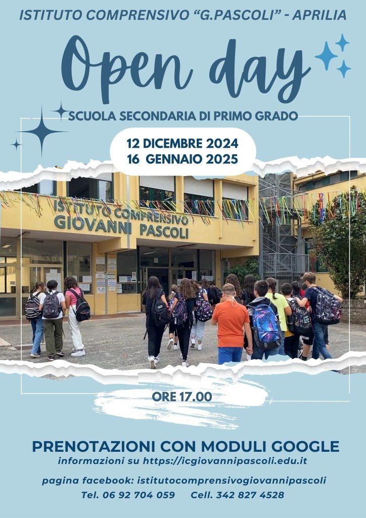 L’Istituto Pascoli di Aprilia apre quindi le sue porte per il primo Open Day il giorno 12 dicembre 2024 alle ore 17:00, per fornire tutte le informazioni per chi dovrà iscriversi alle scuole medie dal prossimo anno. “Scoprirete - spiega l’istituto - una scuola attenta alla preparazione dei ragazzi, alle loro singole necessità, allo sviluppo delle competenze chiave europee, ad una didattica innovativa e di stampo laboratoriale, alla creatività e a molto altro ancora”.