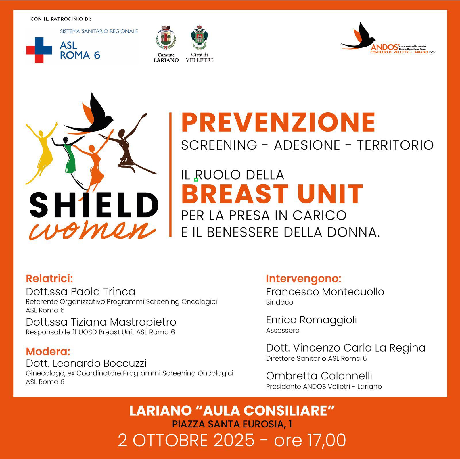 “Ottobre Rosa”, diverse iniziative sono state messe in campo dall’associazione Andos di Velletri-Lariano per questo mese dedicato alla prevenzione dei tumori al seno. I primi due eventi sono in programma per oggi e sabato, venerdì. Questo pomeriggio alle 17.00 ci sarà il convegno “Prevenzione: Screening, adesione e territorio”, presso l’aula consiliare del Comune di Lariano. Sabato 4 Ottobre l’appuntamento è a Velletri, alle 16.00, presso la Sartoria delle Idee di via Sant’Antonio con l’iniziativa “L’Arte della cura, Curare con l’arte”.