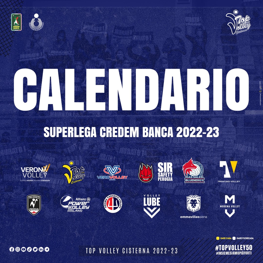 Pallavolo di Superlega: ufficializzato il calendario 2022-23. Prima giornata in trasferta per la Top Volley Cisterna che il prossimo 2 Ottobre esordirà sul campo della Powervolley Milano. Seguiranno d...