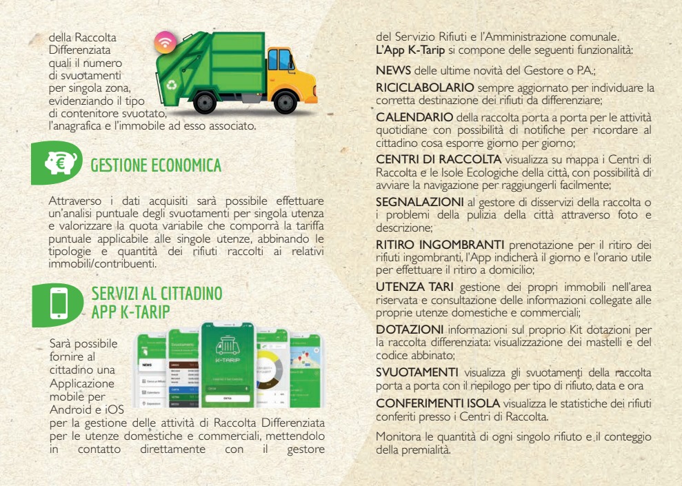 Attraverso i dati acquisiti sarà possibile effettuare un’analisi puntuale degli svuotamenti per singola utenza e valorizzare la quota variabile che comporrà la tariffa puntuale applicabile alle singole utenze, abbinando le tipologie e quantità dei rifiuti raccolti ai relativi immobili/contribuenti.