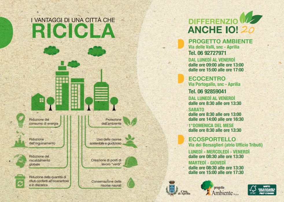La sperimentazione riguarderà solo 2 delle 6 zone. Gli operatori impiegati saranno 14, suddivisi in 11 squadre di raccolta. Il territorio individuato per la prima fase di sperimentazione è quello identificato con le attuali Zona 1 e Zona 2, nelle quali risiedono 7426 nuclei familiari, per un totale di 17712 cittadini. (Zona 1: Fossignano, La Cogna, Casalazzara e via Riserva Nuova. Zona 2: Apriliana, Vallelata e Campoleone). In sostanza meno rifiuti indifferenziati vengono prodotti più salvaguardiamo il territorio. Con il passaggio alla tariffa puntuale i vantaggi sono molteplici:si rispettano gli obiettivi indicati dall’Unione Europea, si aumenta la percentuale di raccolta differenziata dei rifiuti e una sensibile riduzione dei costi di smaltimento, si riduce sempre più la quantità di rifiuti prodotti pro-capite, si consente un migliore monitoraggio del servizio offerto dal gestore.