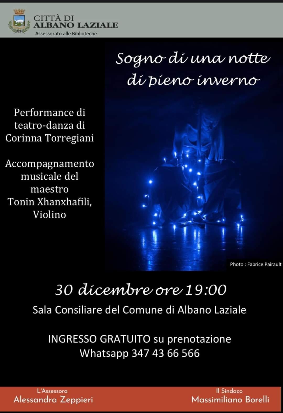 Performance di teatro-danza questa sera presso la Sala Nobile di Palazzo Savelli, ad Albano. L’appuntamento è alle 19.00. Sul palco Corinna Torregiani, accompagnata al violino dal Maesto Tonin Xhanxhafili. L’ingresso è gratuito, ma è necessaria la prenotazione al numero 347/43.66.566.