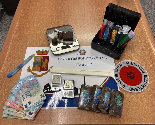 È così che, dopo essersi presentati sull’uscio per procedere ad una perquisizione domiciliare, gli agenti hanno trovato, proprio nella camera da letto del giovane, diverse confezioni di caramelle e gomme contenenti marijuana e hashish per un peso complessivo di circa 500 grammi, oltre a tutto il kit per il confezionamento della sostanza stupefacente.