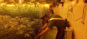 I Carabinieri della Compagnia di Pomezia hanno arrestato 11 persone in flagranza di reato di produzione e detenzione ai fini di spaccio di sostanze stupefacenti. Più in particolare, nel corso di un servizio straordinario di controllo del territorio per la prevenzione e repressione dei reati, i Carabinieri, mentre perlustravano l’area industriale di Pomezia, hanno notato un via vai sospetto di stranieri nei pressi di due capannoni, decidendo di accedervi per più approfondite verifiche. I militari dell’Arma, accedendo a quelle strutture, hanno trovato due piantagioni per la coltivazione di cannabis, allestite con complessi e costosi sistemi di irrigazione, illuminazione ed aerazione. Presso il primo capannone i Carabinieri hanno sequestrato una coltivazione con all’interno 1.022 piante di varia altezza compresa tra i 50 ed i 190 cm e 1.100 piante già tagliate ed in fase di essiccazione. Nel secondo capannone, invece, una coltivazione di 1.550 piante in crescita di varia altezza compresa tra i 10 ed i 100 cm e 150 piante già tagliate ed in fase di essiccazione, insieme a 15 sacchi di sostanza vegetale pronta per lo sfogliamento e 3 contenitori di infiorescenze. Inoltre, nel corso di una successiva perquisizione domiciliare eseguita a carico di uno dei fermati, sono stati rinvenuti anche 8,8 kg di marijuana e 35 gr. di hashish, un bilancino, materiale per il confezionamento e 770 euro in contanti, provento di attività delittuose. Gli arrestati, su disposizione della Procura della Repubblica di Velletri sono stati tradotti presso le case circondariali di Velletri, Latina, Frosinone, Civitavecchia e Rebibbia femminile, in attesa dell’udienza di convalida.