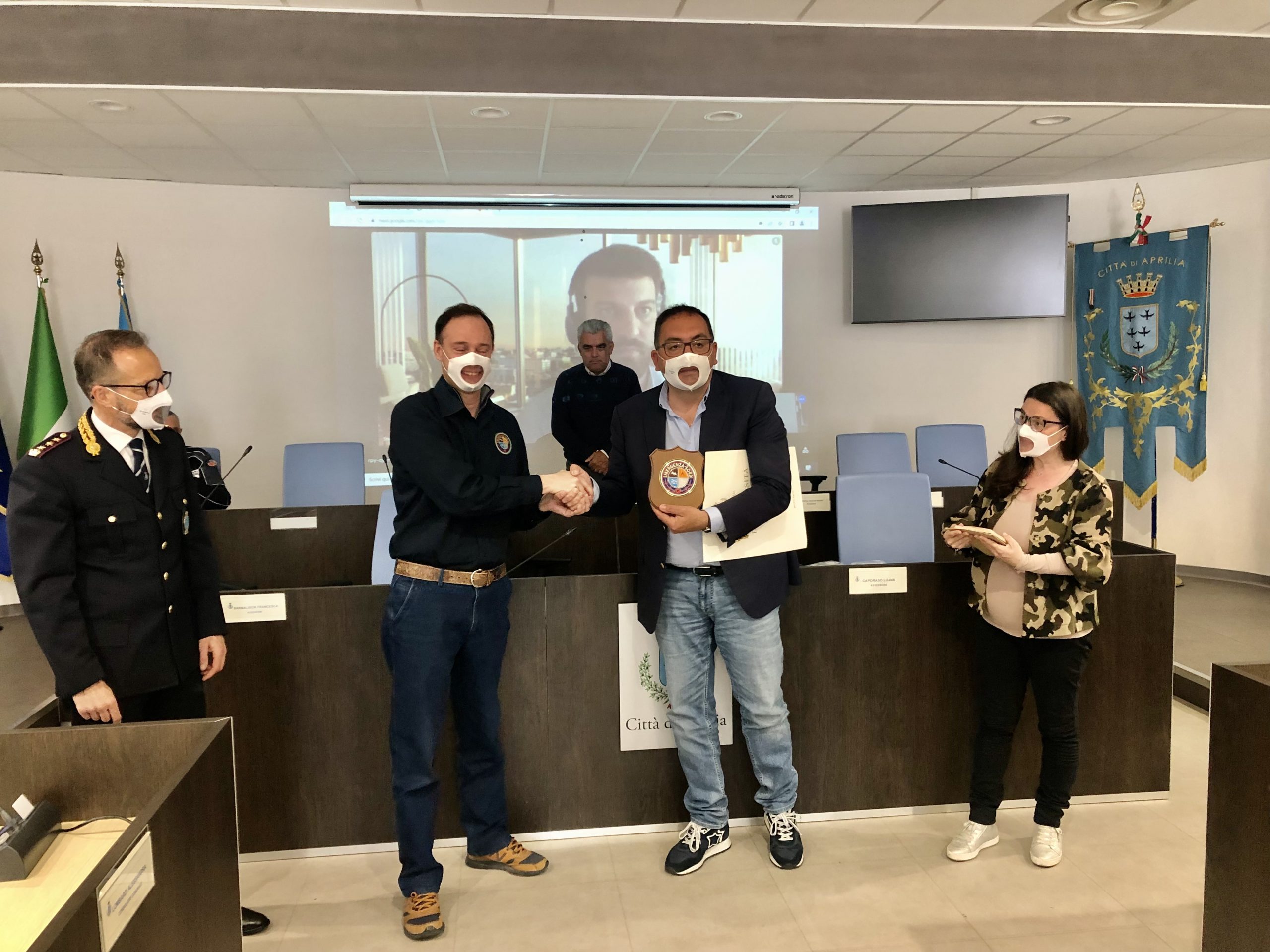 Questa mattina erano presenti alla conferenza stampa di presentazione dell’App Municipium, il sindaco di Aprilia Antonio Terra, l’assessora alle Politiche Sociali Francesca Barbaliscia, il Presidente del Consiglio Pasquale De Maio, il comandante della Polizia locale Massimo Giannantonio ed il presidente dell’associazione "Emergenza Sordi APS” Luca Rotondi accompagnato da una rappresentanza dei membri apriliani dell’associazione.