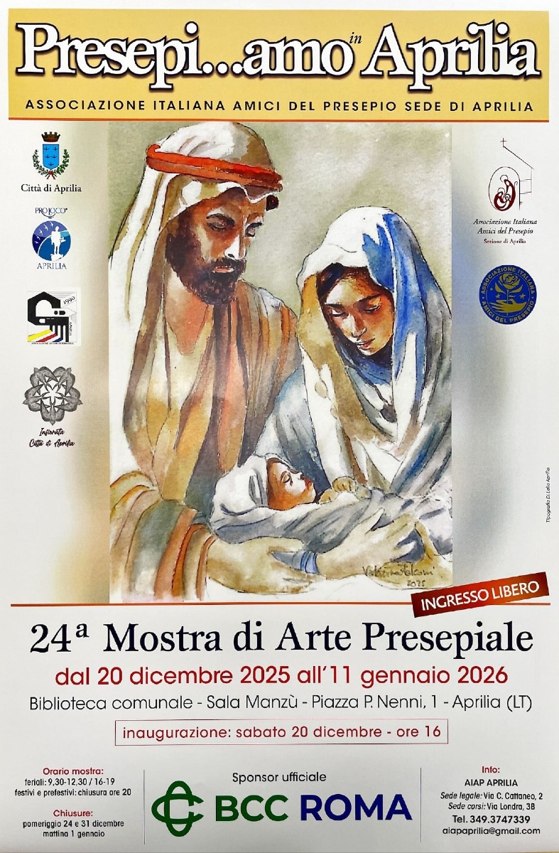 Torna anche per questo Natale la mostra “Presepi..Amo in Aprilia”. Sabato 20 dicembre alle 16 è prevista l’inaugurazione della 24esima edizione. Appuntamento presso la sala Manzù della biblioteca comunale. La mostra rimarrà aperta fino all’11 gennaio.