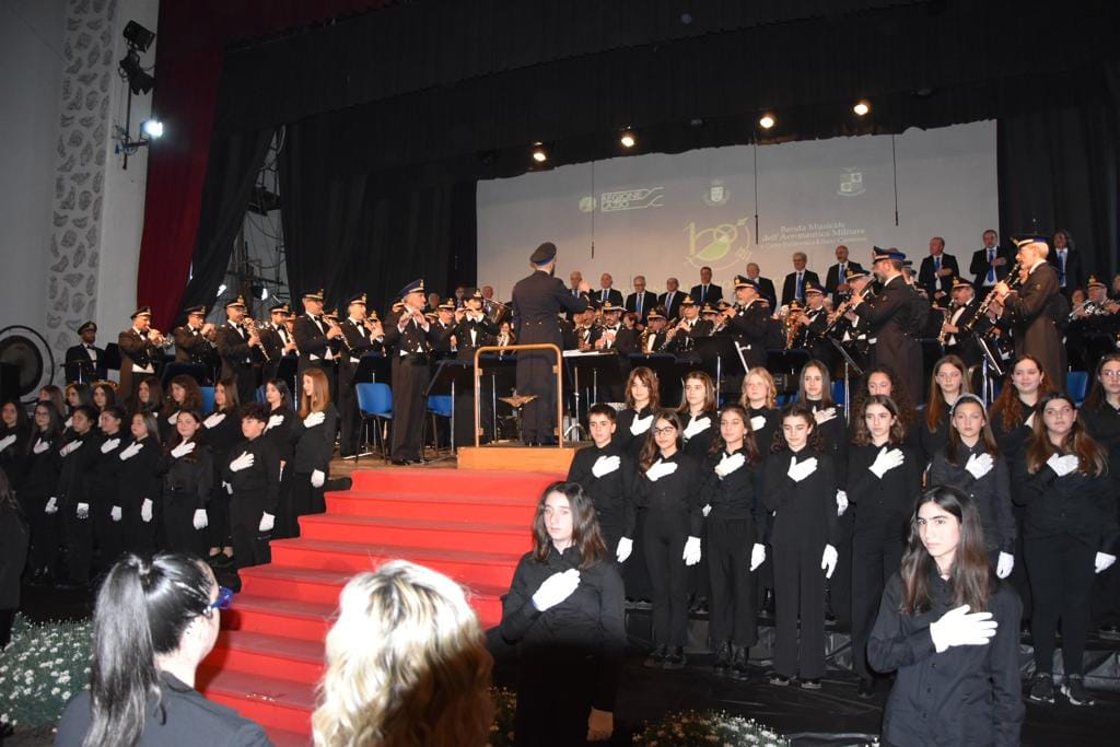 E’ ancora molto forte l’eco del successo ottenuto dal concerto organizzato ad Aprilia, al Teatro Europa, sabato scorso, in occasione dei 100 anni dell’Aeronautica Militare. Una Banda Musicale dell’Am, diretta magistralmente dal Maestro Maggiore Pantaleo Leonfranco Cammarano, e il Coro dei Liberti Cantores diretti dal Maestro Rita Nuti, insieme per la prima volta e in splendida forma hanno intrattenuto il pubblico per oltre un’ora.