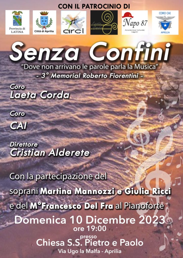 Ricorre oggi, 5 Dicembre il quarto anniversario dalla scomparsa di Roberto Fiorentini: due eventi sono stati organizzati ad Aprilia per ricordarlo. Il primo è in programma per domenica 10 dicembre alle 18.00 presso la chiesa Santi Pietro e Paolo. Dopo la Santa Messa, alle 19.00, ci sarà il concerto “Senza Confini”, aperto a tutti, con la partecipazione dei cori “Laeta Corta” e del Cai di Aprilia.