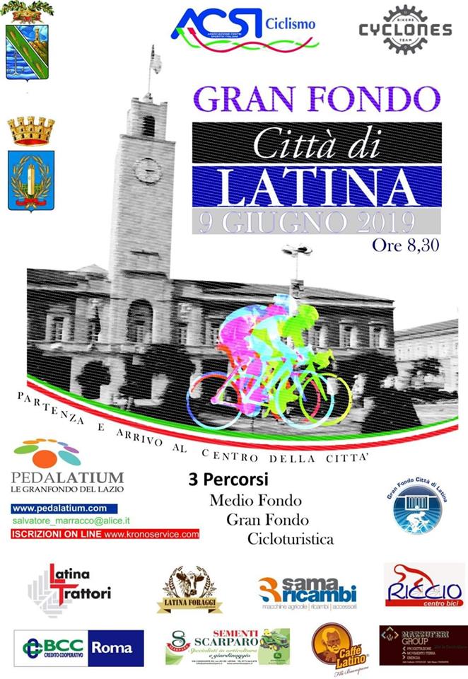 La Gran Fondo Città di Latina è inserita nel Campionato Regionale Acsi Ciclismo e Circuito Pedalatium, cuore della manifestazione lo Stadio Francioni, partenza da Piazza San Marco.