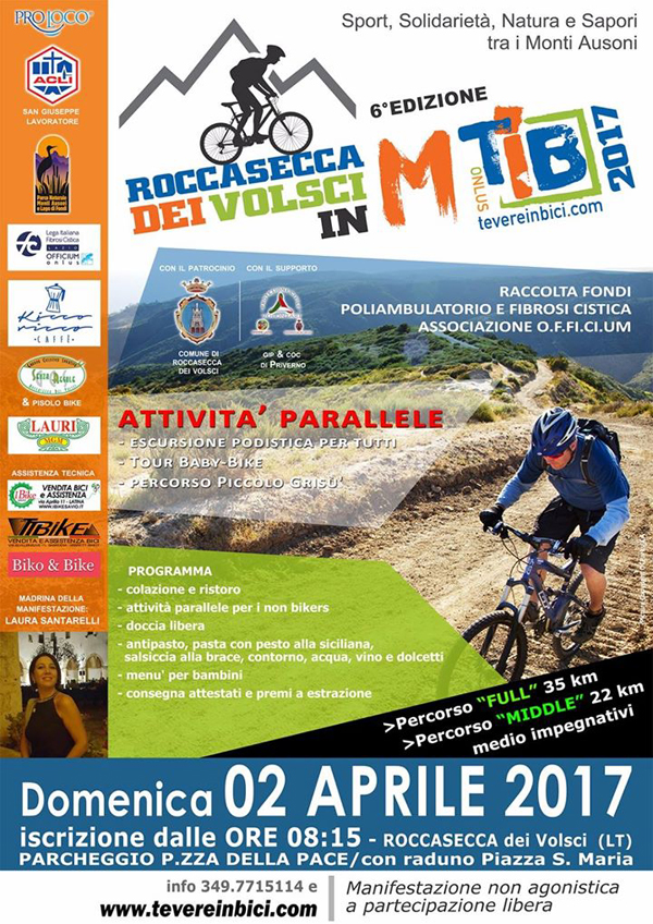 Per i dettagli del programma, orari, riferimenti, tracce percorso si può consultare il sito www.tevereinbici.com oppure Facebook cercando l’evento Roccasecca dei Volsci in MTiB o cliccando MI PIACE alla pagina facebook Tevereinbici.