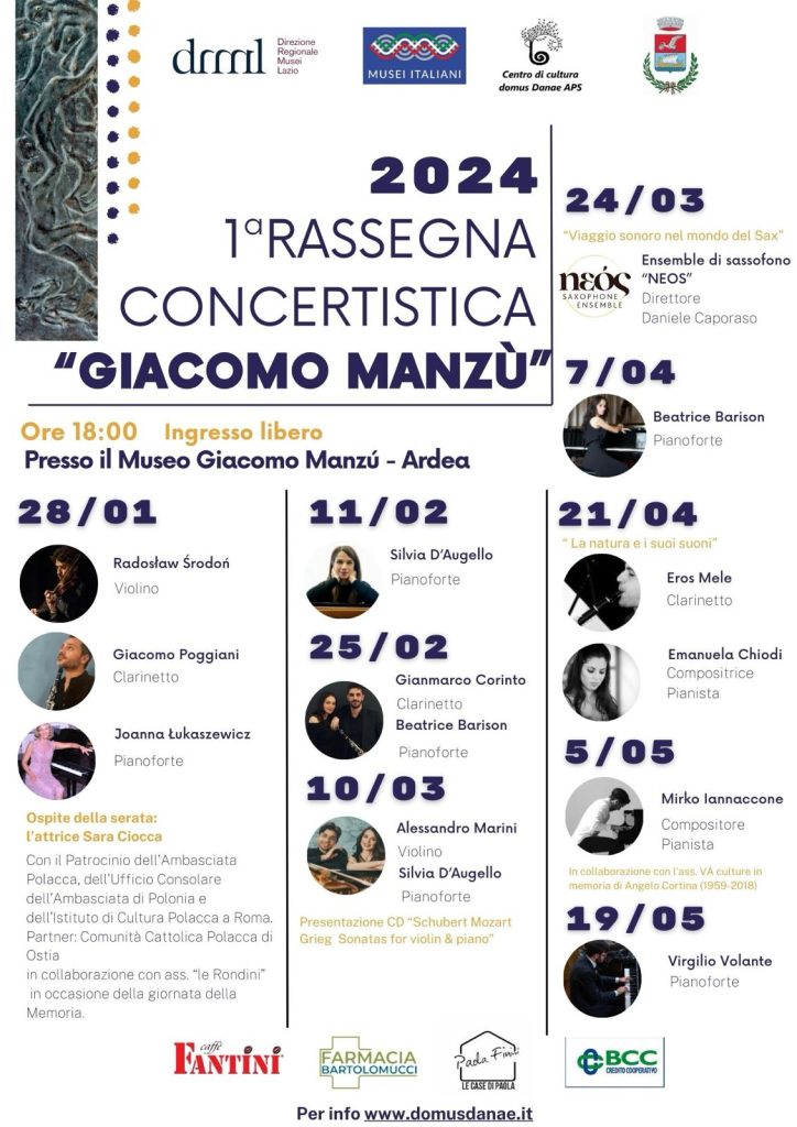 La Rassegna concertistica “Giacomo Manzù” prosegue domenica 24 marzo con ilquinto appuntamento. Alle 18.00, presso il Museo “Manzù” di Ardea si potrà assistere al concerto dell’ensemble di sassofoni “...