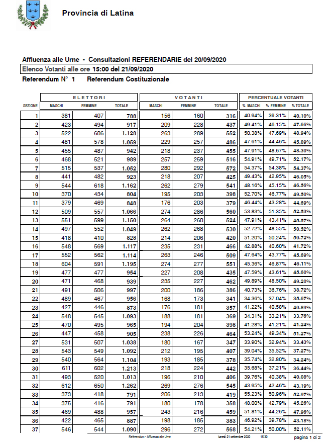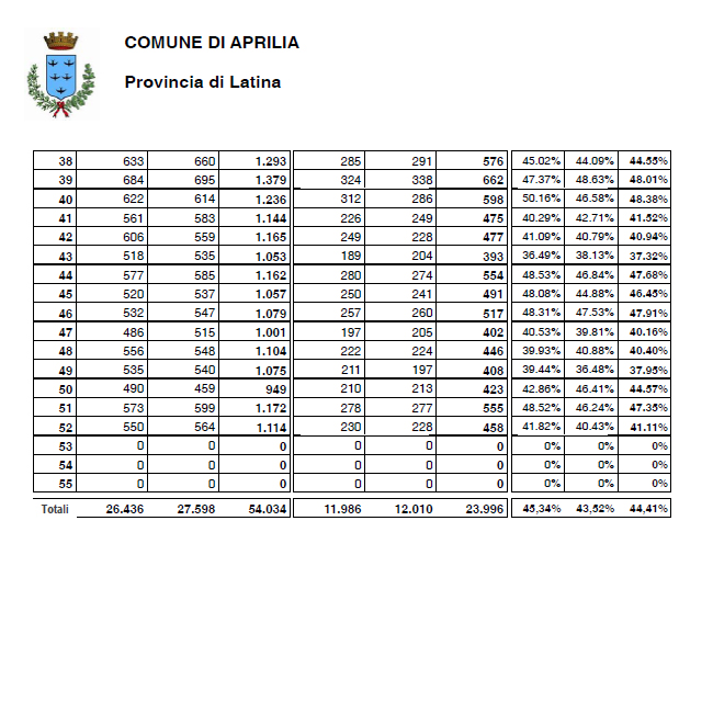 Chiuse le urne si procede con lo spoglio per conoscere il risultato del referendum anche ad Aprilia. L'affluenza alle 15.00 di oggi si è attestata al 44,41%. Ecco i dati sui votanti sezione per sezione.