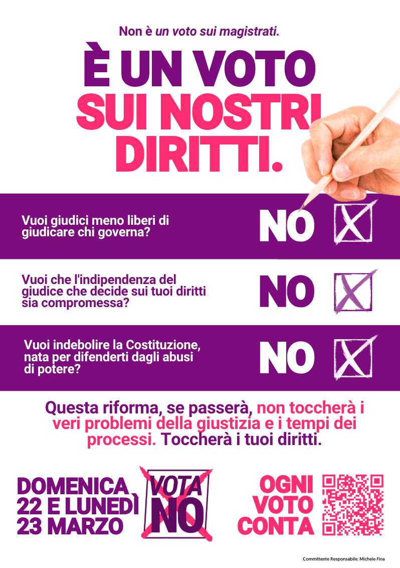 Il Partito Democratico di Aprilia aderisce al Comitato per il NO al referendum sulla giustizia del 22 e 23 marzo 2026. “Perché la riforma proposta non riguarda i magistrati, - scrive il Partito Democratico di Aprilia - ma i diritti delle cittadine e dei cittadini e l’equilibrio tra i poteri dello Stato previsto dalla Costituzione. Questa riforma ha effetti concreti sulla vita delle persone: un giudice meno indipendente significa meno tutele nelle cause di lavoro, meno garanzie nei diritti civili e più difficoltà nel chiamare lo Stato e le grandi partecipate alle proprie responsabilità. Senza autonomia della magistratura non c’è vera tutela dei diritti, soprattutto per i più deboli”.